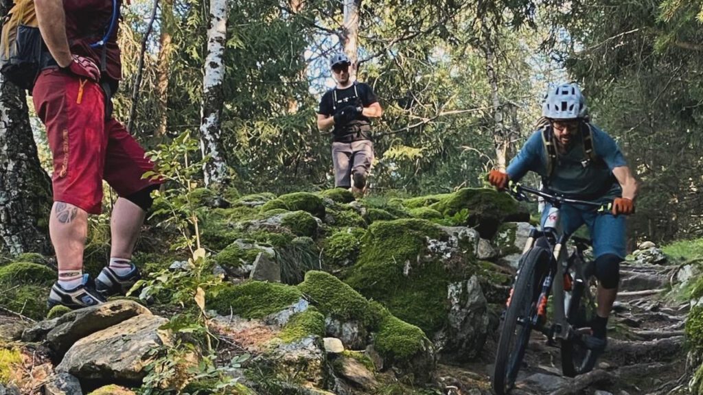 In unseren MTB und EMTB Fahrtechnikkursen vermittele ich in Kleingruppen von max. sechs Teilnehmern Grundlagen wie Balance, richtiges Bremsen, bis hin zu fortgeschrittenen Techniken wie Sprünge.
